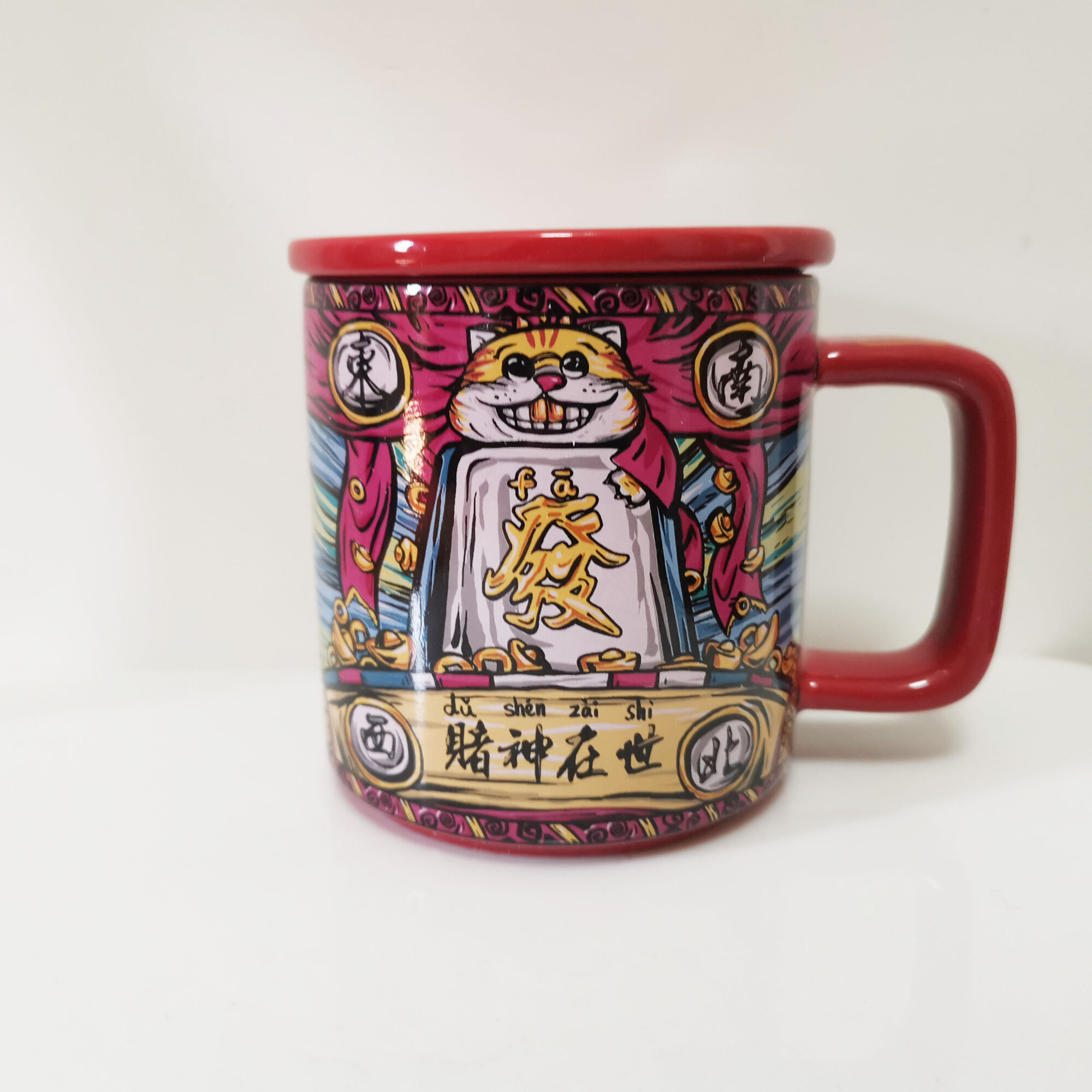 Chinese mahjong ceramic mug 450ml graffiti big capacity gift coffee cup